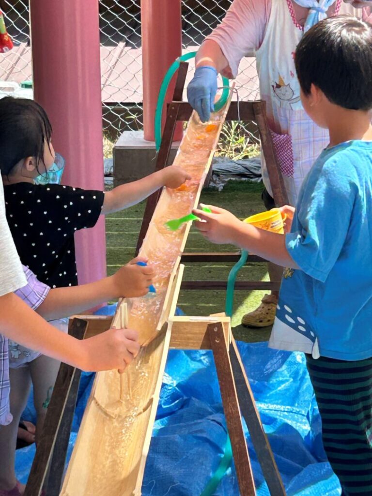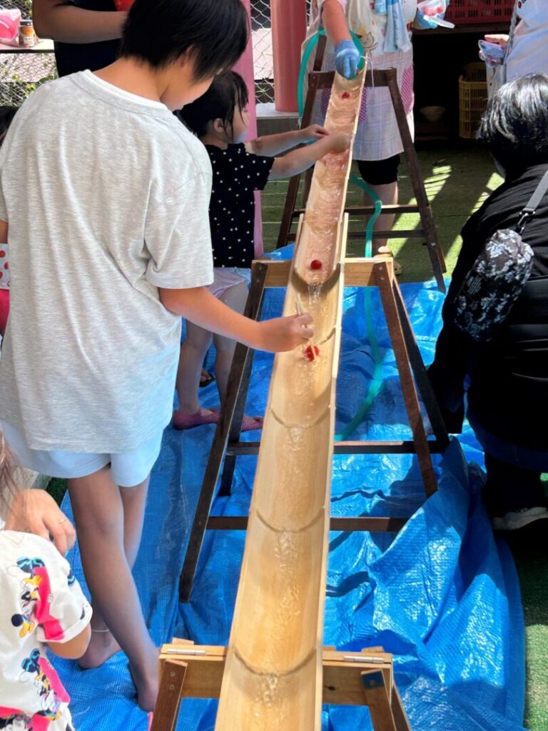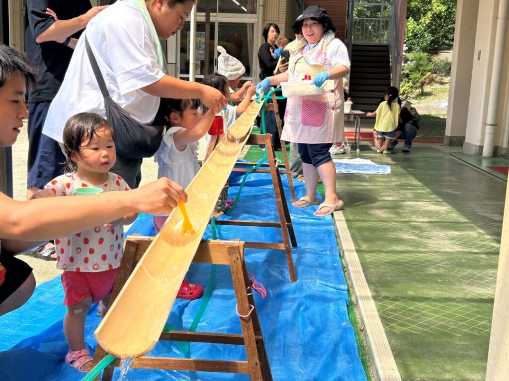 流しそうめんやかき氷、梅ジュースをご用意しました♪